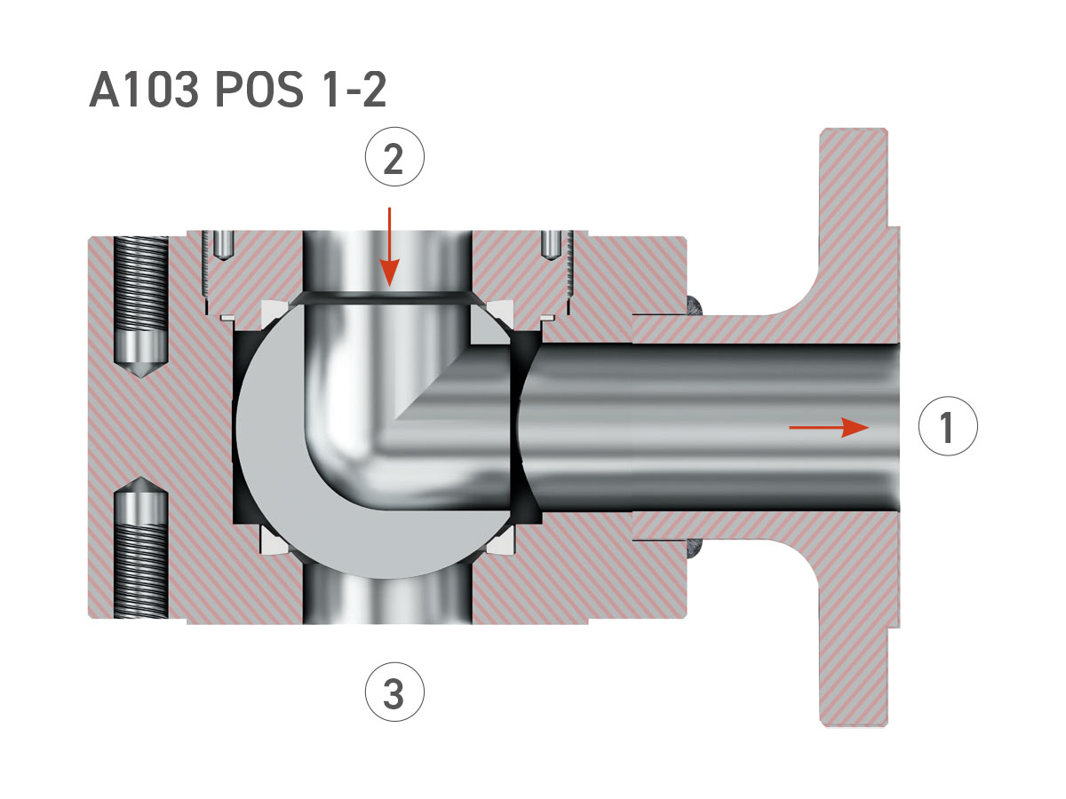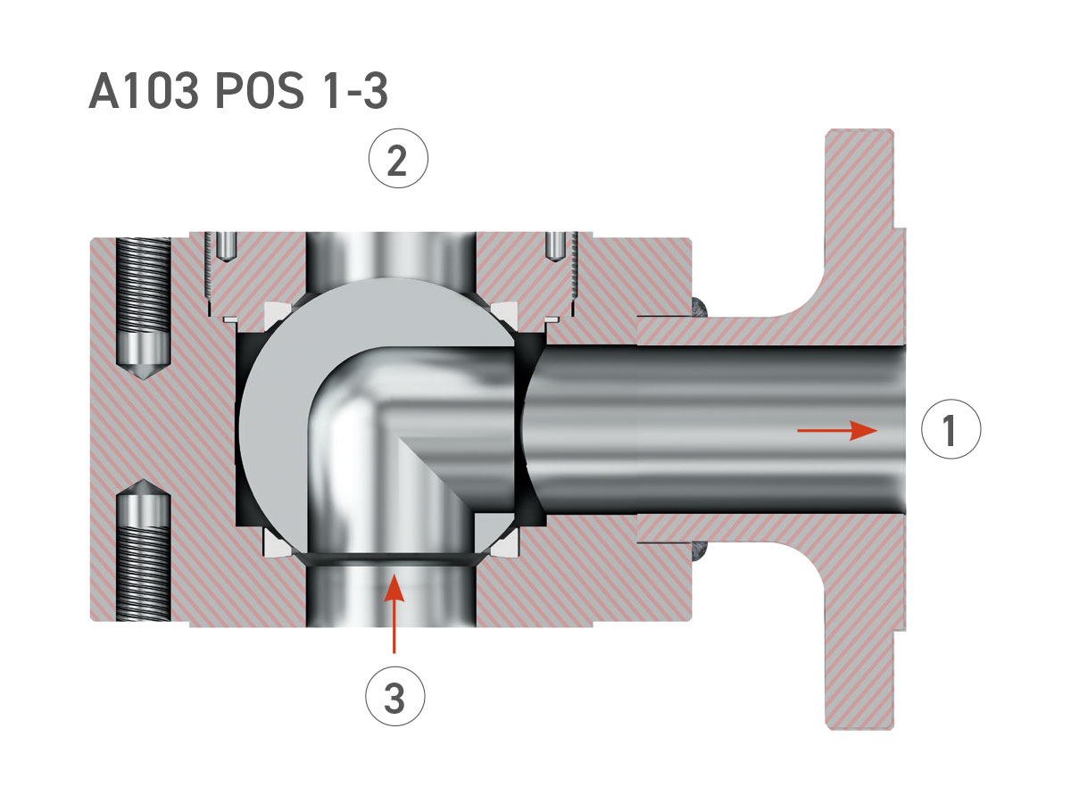 - 2 seats ball valve:(3rd way always open), standard execution with L ball