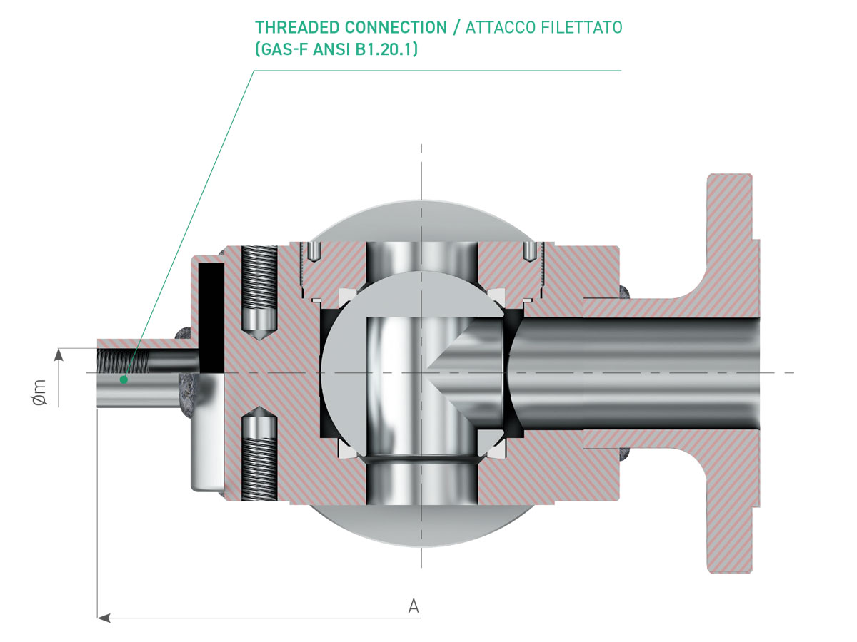 - Heating/cooling jacket integral to the valve body, applicable on bar stock valve (A10N) and on casting body valve (A10NF)
