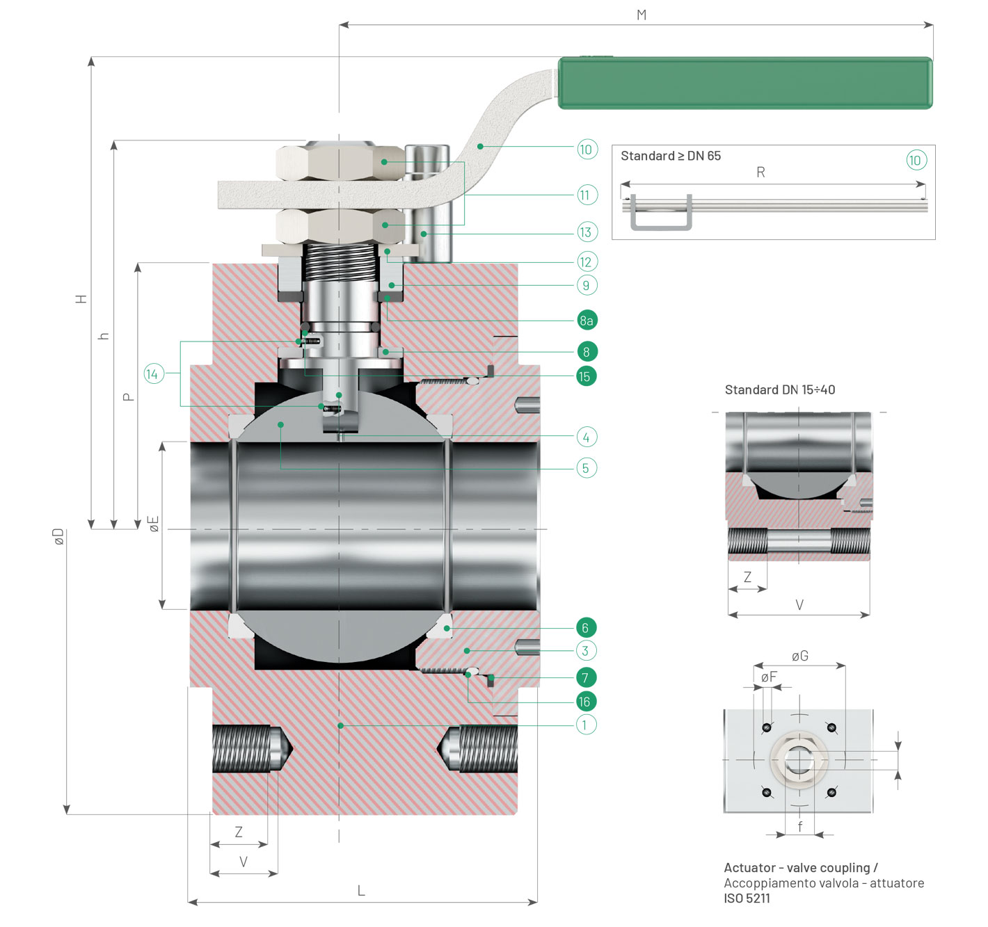 - Size range: 1⁄2” ≤ Ø ≤ 4” / 15 ≤ DN ≤ 100